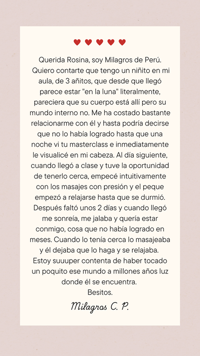 Hoy te dejo las palabras de Milagros, un testimonio más de los que recibo a menudo, pero que siempre me emocionan: